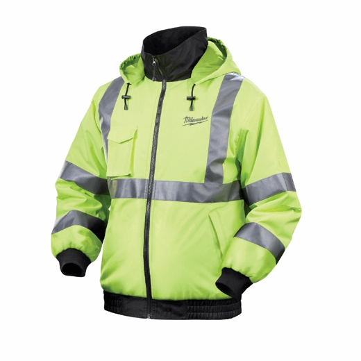 Milwaukee® M12™ High Visibility Heated Jacket: Designed to meet jobsite and most roadside safety standards with ANSI/ISEA 107-2010 Class 3 certification, the Milwaukee M12™ Cordless High Visibility Heated Jacket integrates (3) carbon fiber heating elements and advanced fabric-layering technology to distribute and maintain heat across core body areas. An adjustable heat zone that spans the chest and back provides the right amount of heat for any situation. A 300-denier, wind and water resistant shell keeps weather out while improved insulation and a thermal fleece lining hold heat in to maximize warmth and reduce the number of layers needed. With 3M™ Scotchlite™ reflective striping and a zip-on hood for added jobsite versatility, the Milwaukee® M12™ High Vis Heated Jacket provides up to 6 hours of continuous heat per battery charge to withstand even the harshest winter conditions. Utilizing the same M12™ REDLITHIUM™ Battery technology that powers 60+ tools, the M12™ Battery holder is stored in a sleek back pocket that can expand to fit M12™ XC Batteries and all M18™ Batteries with additional M18™ USB Charger accessory. All M12™ Heated Jackets are washer and dryer safe.