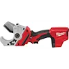 Our M12™ Plastic Pipe Shear Kit with the powerful M12™ 12-Volt Lithium-Ion battery included can slice through 2 inch schedule 80 PVC in just 3 seconds. The pipe shear kit is compatible with M12™ lithium-ion batteries, giving you more than 200 cuts on a single charge. The stainless steel blade and aluminum jaw are impact and water and rust resistant. The ultra- sharp M12™ plastic pipe shear with pierce point makes burr-free cuts, allowing you to cut faster, cleaner and closer than traditional shears. PVC close to a wall or mounted to a stud is no challenge for the quick-return, offset blade for maximum efficiency on repetitive cuts. The MILWAUKEE® plastic pipe shear features a variable speed trigger for controlled cuts in warm and cold weather and an on-board fuel gauge that displays remaining battery charge and run time provide you with superior versatility and productivity. In addition to the pipe shear, this kit includes one M12™ REDLITHIUM™ CP1.5 battery pack, an M12™ Lithium-Ion battery charger, and a carrying case.