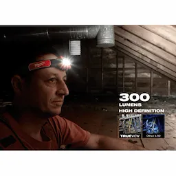 PLUS COMPACTE. CONFORT À LONGUEUR DE JOURNÉE. La lampe frontale MilwaukeeMD offre un éclairage à haute définition TRUEVIEWMC de 300 lumens. Sa conception compacte et légère, et sa courroie en microfibres lavable absorbant la sueur assurent le confort à longueur de journée. Obtenez jusqu’à 31 heures de fonctionnement grâce à 3 modes d’éclairage afin de mieux gérer la luminosité et la durée de fonctionnement. Un corps et un diffuseur résistants à l’eau, à la poussière et aux chocs lui permettent de résister aux plus rigoureuses conditions. Orientez la lumière en faisant pivoter la lampe sur un des 7 crans. Elle comprend quatre agrafes pour la fixer solidement à un casque de protection. La lampe frontale MilwaukeeMD est couverte par une garantie à vie limitée.