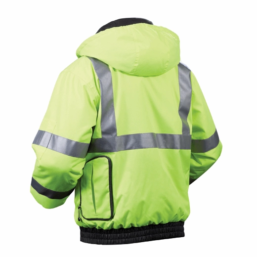 Milwaukee® M12™ High Visibility Heated Jacket: Designed to meet jobsite and most roadside safety standards with ANSI/ISEA 107-2010 Class 3 certification, the Milwaukee M12™ Cordless High Visibility Heated Jacket integrates (3) carbon fiber heating elements and advanced fabric-layering technology to distribute and maintain heat across core body areas. An adjustable heat zone that spans the chest and back provides the right amount of heat for any situation. A 300-denier, wind and water resistant shell keeps weather out while improved insulation and a thermal fleece lining hold heat in to maximize warmth and reduce the number of layers needed. With 3M™ Scotchlite™ reflective striping and a zip-on hood for added jobsite versatility, the Milwaukee® M12™ High Vis Heated Jacket provides up to 6 hours of continuous heat per battery charge to withstand even the harshest winter conditions. Utilizing the same M12™ REDLITHIUM™ Battery technology that powers 60+ tools, the M12™ Battery holder is stored in a sleek back pocket that can expand to fit M12™ XC Batteries and all M18™ Batteries with additional M18™ USB Charger accessory. All M12™ Heated Jackets are washer and dryer safe.
