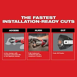 Notre trousse de coupe-câble M18MC FORCE LOGICMC avec mâchoire pour fil multibrin offre les coupes prêtes à l’installation les plus rapides. Le coupe-câble en ligne entièrement équilibré est doté d'une mâchoire ouverte, vous permettant de couper sans effort dans les panneaux les plus étroits. L'outil de coupe de câbles compact sans fil offre également le meilleur rapport poids-puissance, vous permettant de couper du câble de cuivre à brins fins 777.7 MCM en moins de 3 secondes. La mâchoire antiécartement vous offre des coupes nettes sans tirer de brins du câble. Le coupe-câble est alimenté par notre moteur sans balais POWERSTATEMC MILWAUKEE® et notre batterie M18MC REDLITHIUMMC 2.0. Le coupe-câble pour fil multibrin fin peut effectuer plus de 300 coupes par charge, vous offrant une autonomie de pointe inégalée dans l'industrie.