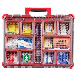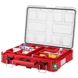 Notre trousse de premiers soins de Classe B Type III PACKOUTMC fait partie du système de rangement modulaire le plus polyvalent et robuste. Le corps résistant aux chocs de notre trousse de premiers soins protège son contenu contre les chutes et les chocs sur le chantier. Un joint d’étanchéité contre les intempéries IP65 protège les bandages, les pansements, les antibiotiques et autres fournitures médicales essentielles de la pluie et des débris de chantier. Le bac de notre trousse de premiers soins de chantier est scellé pour garder tout le contenu en sécurité et à sa place. L’organisateur MILWAUKEEMD PACKOUTMC comprend 193 articles de premiers soins essentiels préconisés pour les blessures les plus courantes sur les chantiers. Le couvercle incolore de l’organisateur prévient la migration et le mouvement du contenu pendant le transport. Des loquets à service intensif et des charnières renforcées garantissent que le contenu de l’organisateur demeure confiné et protégé.