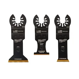 Notre assortiment de 3 lames pour outils polyvalents oscillants pour matériaux multiples Universal Fit OPEN-LOKMC possède des lames idéales pour couper les métaux tendres, le bois, les clous, le PVC, le placoplâtre, et plus. La lame à dents en carbure renforcée de titane incluse est conçue pour durer jusqu'à 50X plus longtemps dans les métaux extrêmes que les lames bimétallique standard. La lame à dents en carbure est idéale pour couper des vis, des boulons, du tuyau métallique, des clous et bien plus. La lame bimétallique améliorée au titane utilise un acier rapide de qualité supérieure et dure jusqu'à 15 fois plus longtemps que les lames standard en acier à haute teneur en carbone (HCS). Les lames bimétalliques ont une largeur de coupe légèrement supérieure à celle de la plupart des lames bimétalliques standard et un corps de lame plus long pour une portée plus longue et une coupe plongeante plus profonde. La combinaison de la conception des dents et du matériau permet d'obtenir de meilleures performances de coupe des métaux tendres. Ces lames bimétalliques sont idéales pour les coupes lisses dans les métaux tendres, le bois, les clous, les tuyaux en cuivre, le PVC et les cloisons sèches. Cet ensemble de lames pour outils oscillants MILWAUKEEMD est conçu et fabriqué aux États-Unis avec des matériaux internationaux et comprend un étui de rangement.