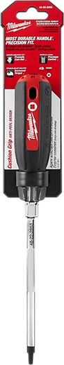 Featuring an anti-peel handle design, hardened tips & forged shanks the Milwaukee® Cushion Grip Screwdrivers provide professional grade solutions and durability to the user. The tactile identification, a new-to-world innovation allows users to accurately select the correct driver without looking. The wrench-ready bolster and precision knurling offers users the features needed to increase effeciency and effectiveness.