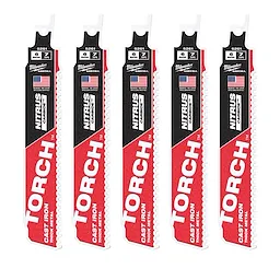 Notre lame SAWZALLMD The TORCHMC avec NITRUS CARBIDEMC pour la fonte et les autres métaux épais représente la nouvelle génération de technologie de dents au carbure. Cette lame SAWZALLMD avec dents au NITRUS CARBIDEMC vous permet de couper plus longtemps, plus de matériaux et plus rapidement que les produits à dents au carbure classiques sur le marché aujourd’hui. La technologie MILWAUKEEMD NITRUS CARBIDEMC élimine le compromis entre la durée de vie et la rapidité de coupe en comparaison aux lames à dents au carbure ordinaires. La lame procure une durée de vie 3X plus longue que les lames de scie alternative à dents au carbure existantes afin de pouvoir continuellement couper les tuyaux de fonte les plus exigeants. Fabriquées avec 25 % plus de carbure nitreux par dent et une languette universelle de 1/2 po, la lame SAWZALLMD The TORCHMC avec NITRUS CARBIDEMC est conçue pour couper les métaux les plus épais comme la fonte et les tuyaux d’évacuation. Grâce à son carbure unique, elle surpasse aussi les lames à dents au carbure ordinaire dans les métaux épais courants.