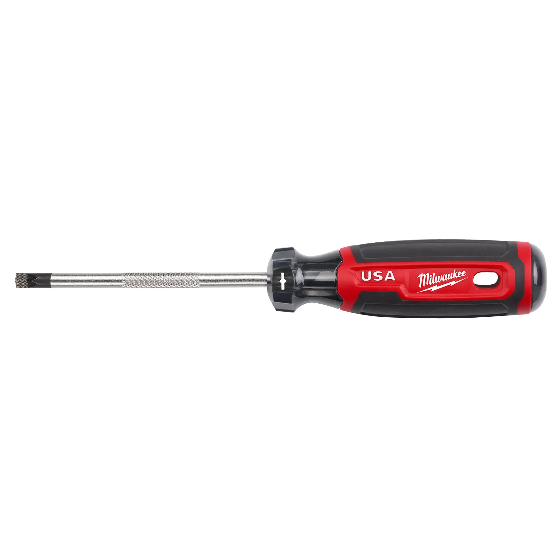 Nos tournevis à manche matelassé MilwaukeeMD (É.-U.) sont fabriqués pour donner au professionnel le tournevis le mieux adapté avec une prise maximale. Nos embouts de tournevis sont usinés sur mesure pour offrir un ajustement précis et réduire l’arrachement lors des applications de fixation exigeantes. Pour plus de confiance, les embouts sont gravés au laser pour augmenter la surface de préhension. Fabriqués en acier haute résistance infusé au bore pour une dureté accrue, nos tournevis résistent aux exigences du chantier avec une durabilité et une durée de vie ultimes. Pour une polyvalence accrue, certains tournevis sont dotés d’un levier prête à l’emploi pour un couple accru et d’une tige moletée pour un contrôle précis. Les marquages d’identification rapide sur la poignée permettent d’identifier facilement la taille des embouts de tournevis, notamment Phillips, d’ébéniste, ECX, à fente et équerre. Les tournevis de démolition comprennent également un capuchon de frappe prêt à être utilisé avec un marteau. Nos tournevis ont des tailles de tige allant de 3 à 10 pouces. Nos tournevis à manche matelassé Milwaukee (É.-U.) sont fabriqués aux É.-U. avec une technologie de fabrication de pointe et des matériaux d’origine locale, le tout soutenu par une garantie à vie complète.