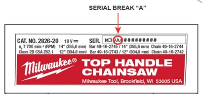Milwaukee Tool, in cooperation with the U.S. Consumer Product Safety Commission (CPSC), is voluntarily recalling a subset of M18 FUEL™ 12” and 14” Top Handle Chainsaws (category number 2826-20) due to a potential chain brake issue.