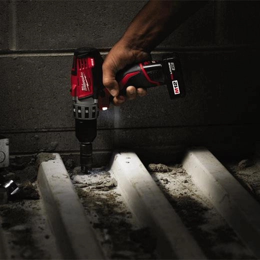 Drill and fasten up to 35% faster with the only tool in its class that has an all-metal locking chuck. The powerful M12TM cordless lithium-ion 3/8” drill/driver delivers 275 in-lbs of torque – up to 25% more torque than the competition – and 0-400/0-1,500 RPM. Its compact, lightweight and durable design means greater comfort and efficiency on the jobsite. The all-metal single-sleeve ratcheting chuck offers superior bit grip, so you won’t have to stop for bit retightening or lost bits.  The onboard LED light and fuel gauge help you increase productivity and avoid interruptions. The REDLITHIUM Battery Pack delivers more work per charge and more work over pack life than the competitors. The kit includes two M12 REDLITHIUM batteries, a 30-minute charger and carrying case.