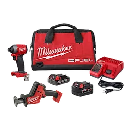 Our M18 FUEL™ 2PC Combo Kit delivers you the most advanced 18-Volt cordless cutting and fastening technology in the industry. This kit features two M18 FUEL™ brushless cordless tools, including a one-handed recip saw and an impact driver. M18 FUEL™ is fully compatible with the MILWAUKEE® M18™ system, featuring 200-plus tools. Included is the M18 FUEL™ HACKZALL (2719-20) that cuts up to 50% faster, delivers up to 4X lower vibration, and a best in class 7/8 in. stroke length. Also included is the M18 FUEL™ 1/4 in. Hex Impact Driver (2853-20), the fastest, most compact, and most powerful tool in its class. At 2,000 in./lbs. of torque and 4.59 in. it increases your productivity for demanding fasteners and gives you more access to tight spaces. M18 FUEL™ features the most advanced cordless technology in the industry, a POWERSTATE Brushless Motor, REDLINK PLUS Intelligence, and REDLITHIUM Battery Technology, resulting in longer motor life, longer run time, and more power.