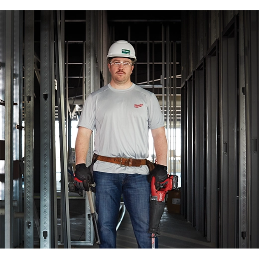 Milwaukee® WORKSKIN™ Performance Shirts are designed for tradesmen that need their next-to-skin layer to dry fast, keep them cool, and protect them from the sun in hot, summertime working conditions. Unlike cotton or standard wicking shirts, Milwaukee® WORKSKIN™ Performance Shirts utilize patented COOLCORE® Fabrics to stay up to 30% cooler, wick moisture faster, and prevent uncomfortable saturation from sweat. The addition of Fast Wicking Sweat Zones underneath the arms and down the back help accelerate drying in high-sweat areas. Made with fabrics that resist pilling and snagging from repeated daily use, Milwaukee® WORKSKIN™ Performance Shirts stay dry and stay cool to reduce fatigue from the hard work in the heat.