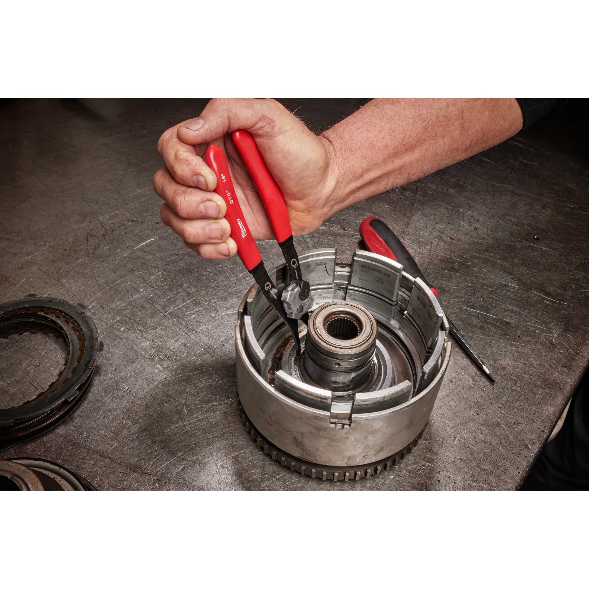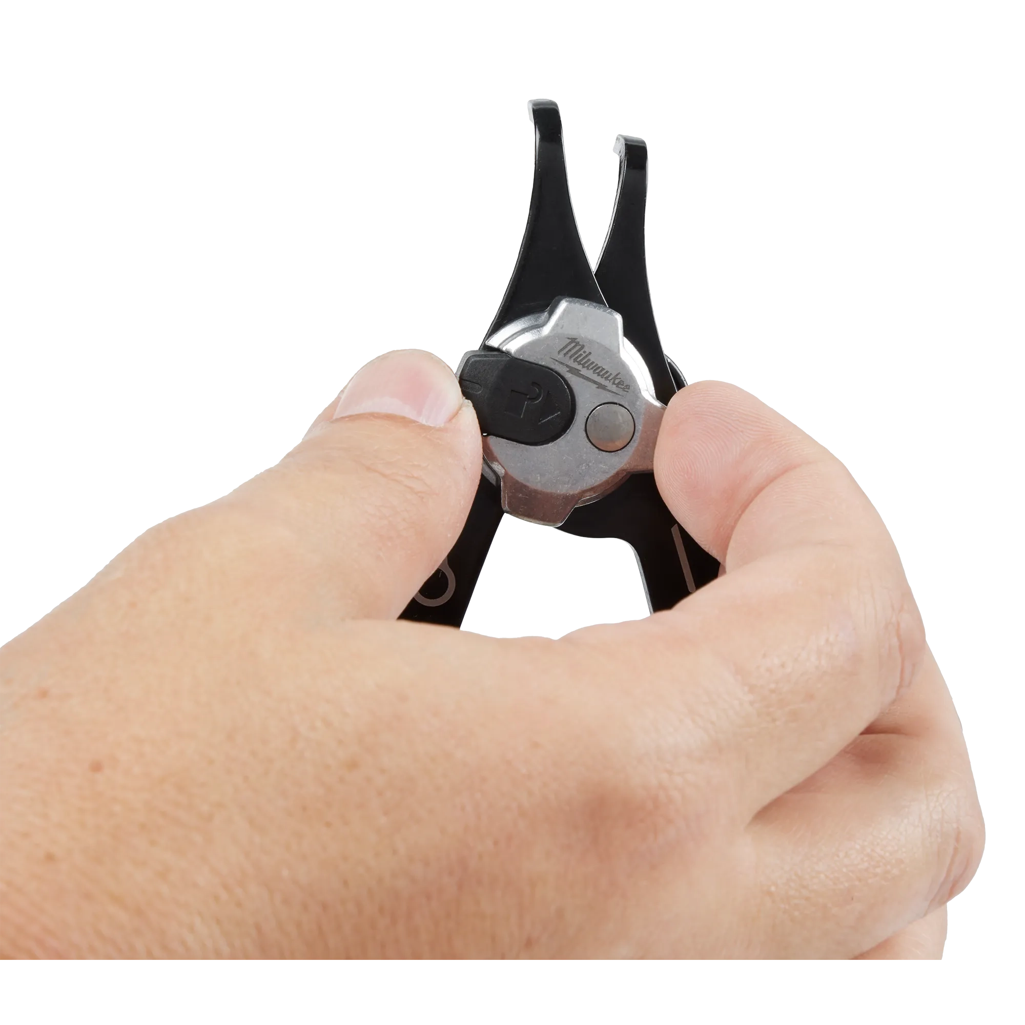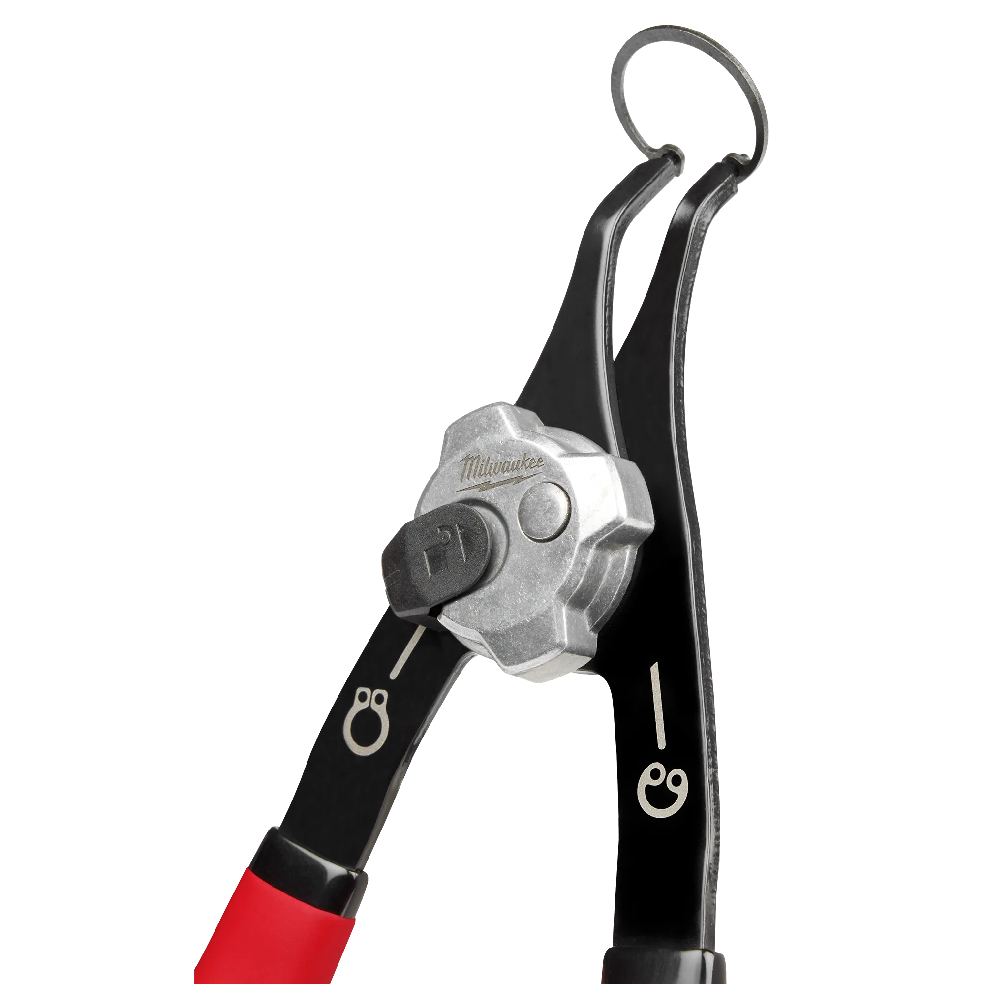 Our 0.070” 18⁰ Convertible Snap Ring Pliers features an all-metal dial that quickly switches between internal and external modes. The all-metal dial is more durable than competitors. The all-metal dial provides the ability to withstand harsh environments. The double dipped slip resistant grips withstand the harsh jobsite chemicals and abuse. Our Convertible Snap Ring Pliers are backed by a Limited Lifetime Warranty.