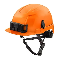 Our Type 2, Class E Front Brim Safety Helmets deliver you better protection and more comfort. These safety helmets offer protection from top and side impacts. These construction safety helmets are BOLT™ Accessory Compatible with four BOLT™ accessory slots and two universal accessory slots that easily integrate additional personal protection equipment and accessories so you can Secure Accessories Simultaneously. Each helmet includes a MILWAUKEE® BOLT™ Headlamp Mount that works with most headlamps for easy, secure attachment, and a BOLT™ Marker Clip allows for easy access to pens and markers. The Milwaukee helmets have a comfortable padded suspension that includes an adjustable swinging ratchet for better comfort. The climbing style helmet also has a comfortably fitting five adjustable buckle chin strap for better security. An antimicrobial sweatband and helmet liner prevent odor and bacteria build up and are removable and machine washable. These safety helmets are ANSI type 2 and customizable by adding your logo.
