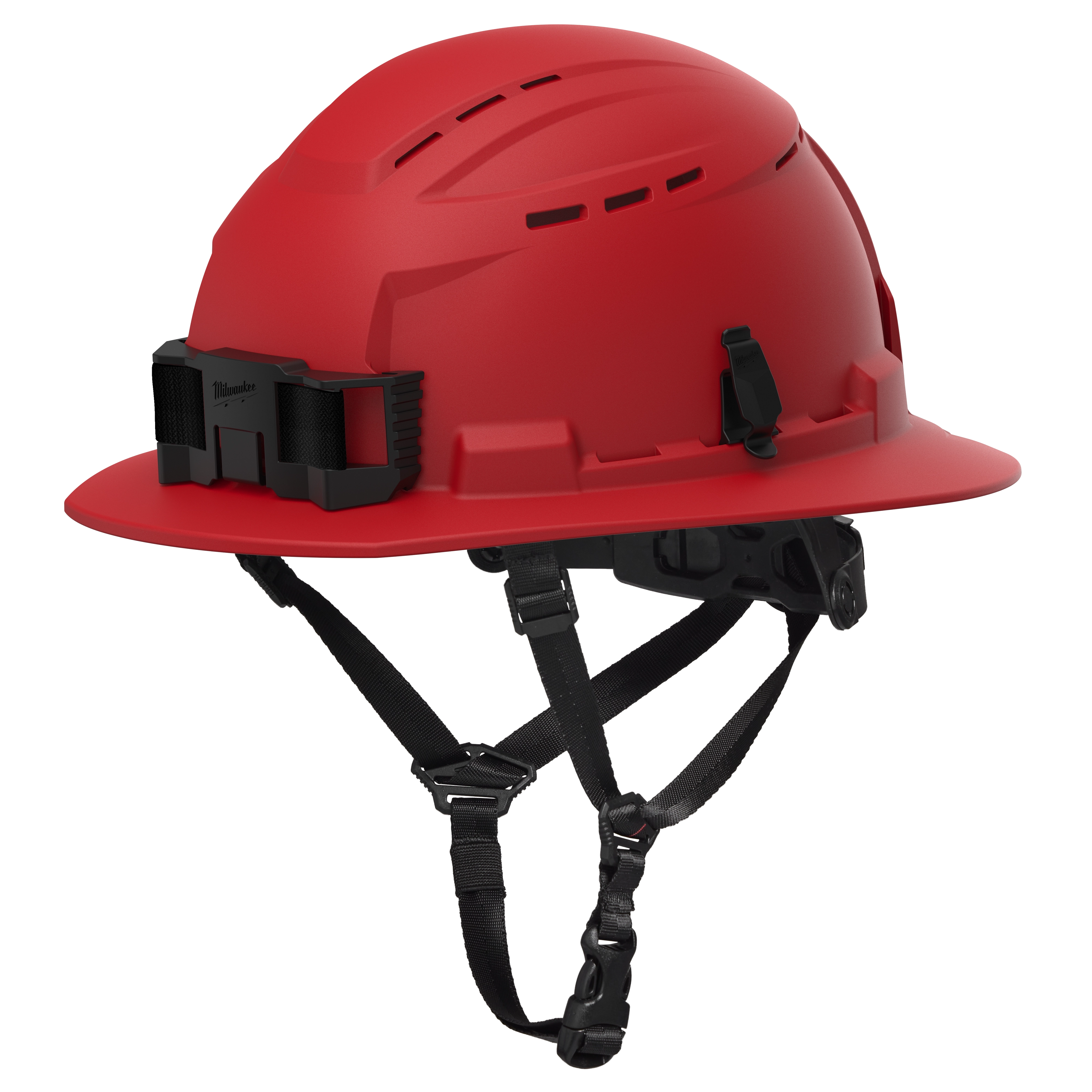 Our Type 2, Full Brim, Class C Vented Safety Helmets deliver better protection and more comfort. This helmet is up to 15 degrees cooler than other Full Brim Safety Helmets today. It is also the Lightest Weight Full Brim Safety Helmet available. These safety helmets offer protection from top and side impacts. These construction safety helmets are BOLT™ Accessory Compatible with four BOLT™ accessory slots and two universal accessory slots that easily integrate additional personal protection equipment and accessories so you can Secure Accessories Simultaneously. The helmets include a MILWAUKEE® BOLT™ Headlamp Mount that works with most headlamps for easy, secure attachment and a BOLT™ Marker Clip allowing easy access to pens and markers. This Milwaukee helmet has a comfortable padded suspension with an adjustable swinging ratchet for better comfort. The helmet also has a comfortably fitting five-point adjustable chin strap for better security. An antimicrobial sweatband and helmet liner prevent odor and bacteria buildup; the sweatband is removable and machine washable. These safety helmets are ANSI type 2 and customizable by adding your logo.