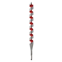 The Milwaukee® 1-1/2" x 18" Ship Auger Bit drills through up to 2X the nails of competitive auger bits without needing resharpening. Drill into clean or nail-embedded wood with confidence when installing Romex wire, Pex water lines, rebar, bolts, and rope in piers, playground equipment and landscaping. The flutes are wider for maximum chip removal, even in deep holes. The polished and coated flute finish means chips won't stick to the bit, even when drilling in material that contains sap or glue.The through-center cutting design creates a more solid striking point against nails compared to the competitions' ahead-of-center and behind-center designs. The longer shaft length makes it easy to drill deeper or overhead without an extension.