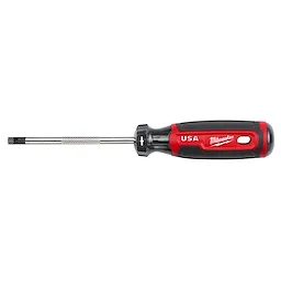 Our Milwaukee® Cushion Grip Screwdrivers (USA) are manufactured to give the professional the best-fitting screwdriver with max grip. Our screwdriver tips are custom machined to deliver a precise fit and reduce stripping during demanding fastening applications. For added confidence, the tips are laser etched to increase the gripping surface. Manufactured with high-strength boron-infused steel for increased hardness, our screwdrivers stand up to the demands of the site with ultimate durability and life. Providing increased versatility, select screwdrivers include a wrench-ready bolster for added torque and a knurled shank for precision control. Quick identification markings on the handle make it easy to identify screwdriver tip size and type, including Phillips, cabinet, ECX, slotted, and square. The demolition screwdrivers also include a hammer-ready strike cap. Our screwdrivers range in shank sizes from 3-inch to 10-inch. Our Milwaukee Cushion Grip Screwdrivers (USA) are made in the USA with best-in-class manufacturing technology and USA-sourced materials all backed by a complete Lifetime Guarantee.