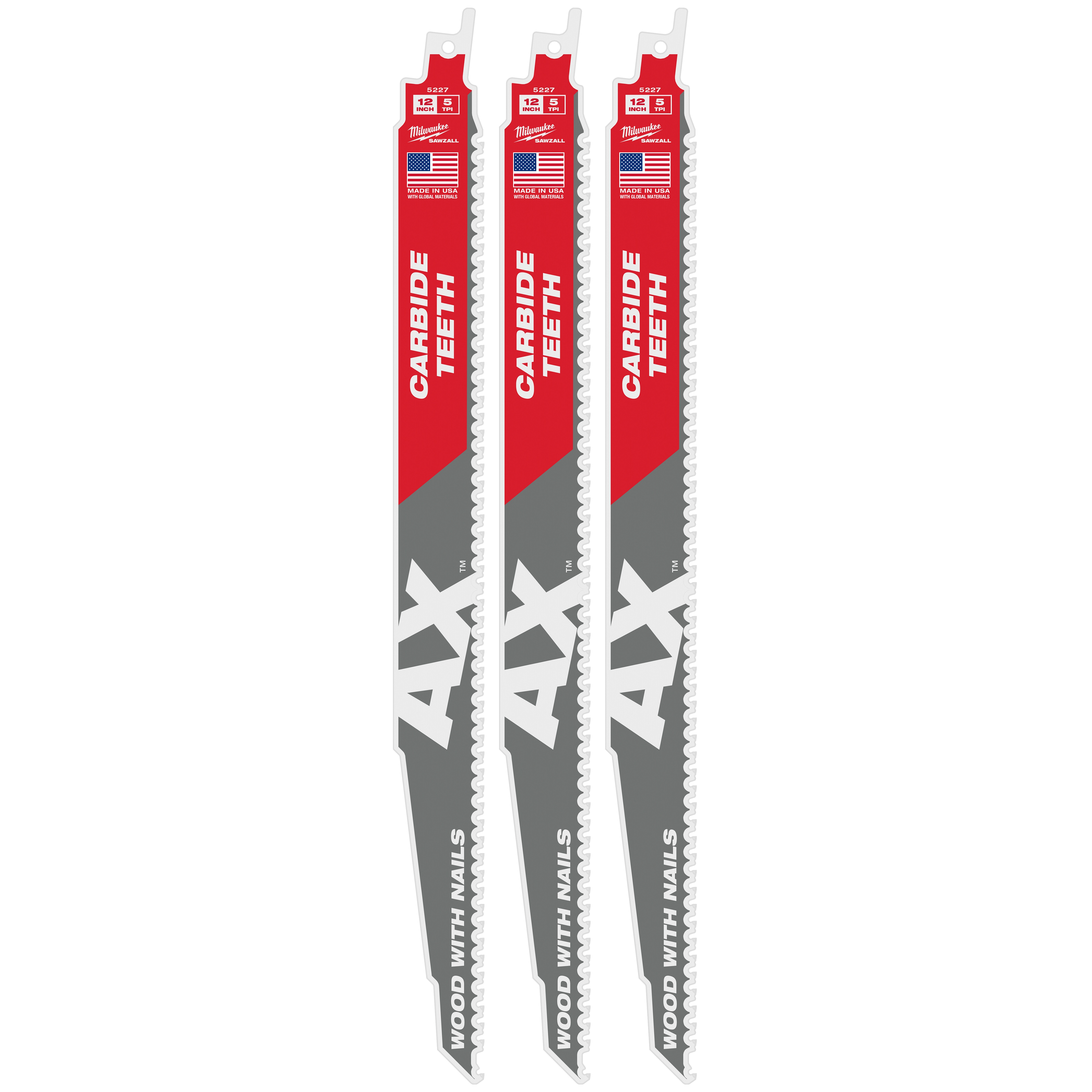 12" 5 TPI AX™ with Carbide Teeth SAWZALL® Blade for Wood with Nails (3 PK)