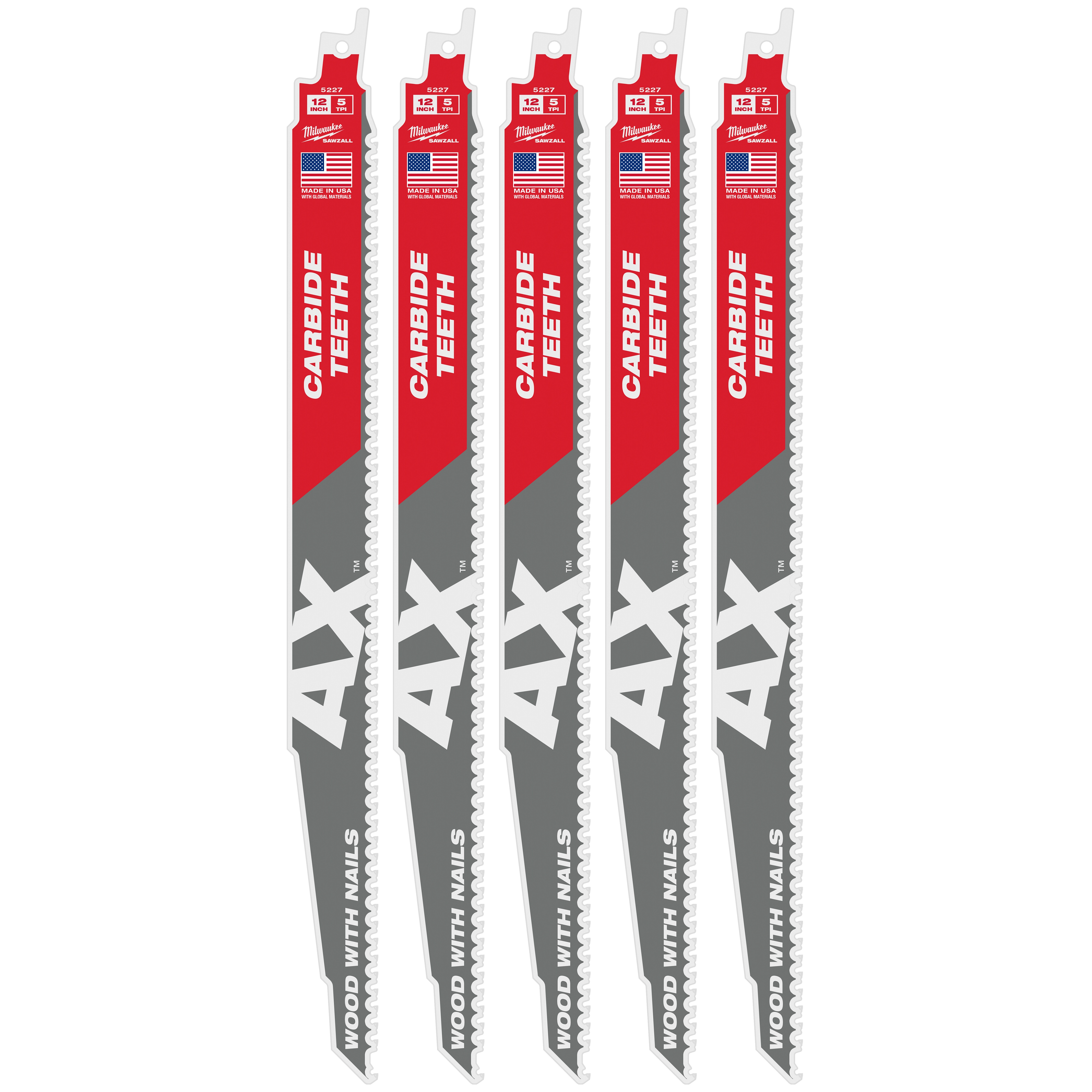 12" 5 TPI AX™ with Carbide Teeth SAWZALL® Blade for Wood with Nails (5 PK)