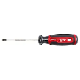 Our Milwaukee® Cushion Grip Screwdrivers (USA) are manufactured to give the professional the best-fitting screwdriver with max grip. Our screwdriver tips are custom machined to deliver a precise fit and reduce stripping during demanding fastening applications. For added confidence, the tips are laser etched to increase the gripping surface. Manufactured with high-strength boron-infused steel for increased hardness, our screwdrivers stand up to the demands of the site with ultimate durability and life. Providing increased versatility, select screwdrivers include a wrench-ready bolster for added torque and a knurled shank for precision control. Quick identification markings on the handle make it easy to identify screwdriver tip size and type, including Phillips, cabinet, ECX, slotted, and square. The demolition screwdrivers also include a hammer-ready strike cap. Our screwdrivers range in shank sizes from 3-inch to 10-inch. Our Milwaukee Cushion Grip Screwdrivers (USA) are made in the USA with best-in-class manufacturing technology and USA-sourced materials all backed by a complete Lifetime Guarantee.