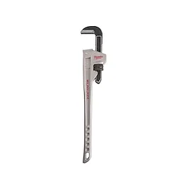 MILWAUKEE® 48-22-7224, 24” Aluminum Pipe Wrench has been designed from the ground up to offer maximum productivity to the professional user.  The 24” Aluminum Pipe Wrench features and OVERBITE™ JAW design offering the largest gripping surface. Dual coil springs offer maximum durability and tool life, and the ergonomic handle form has been designed for maximum comfort and won’t dig into the palms. Through hardened jaws deliver increased grip and tooth durability, and a tether-ready handle loop makes the MILWAUKEE® 48-22-7224 perfect for the toughest of jobsites. MILWAUKEE® stands behind their product and offers a Limited Lifetime Warranty with all pipe wrenches.