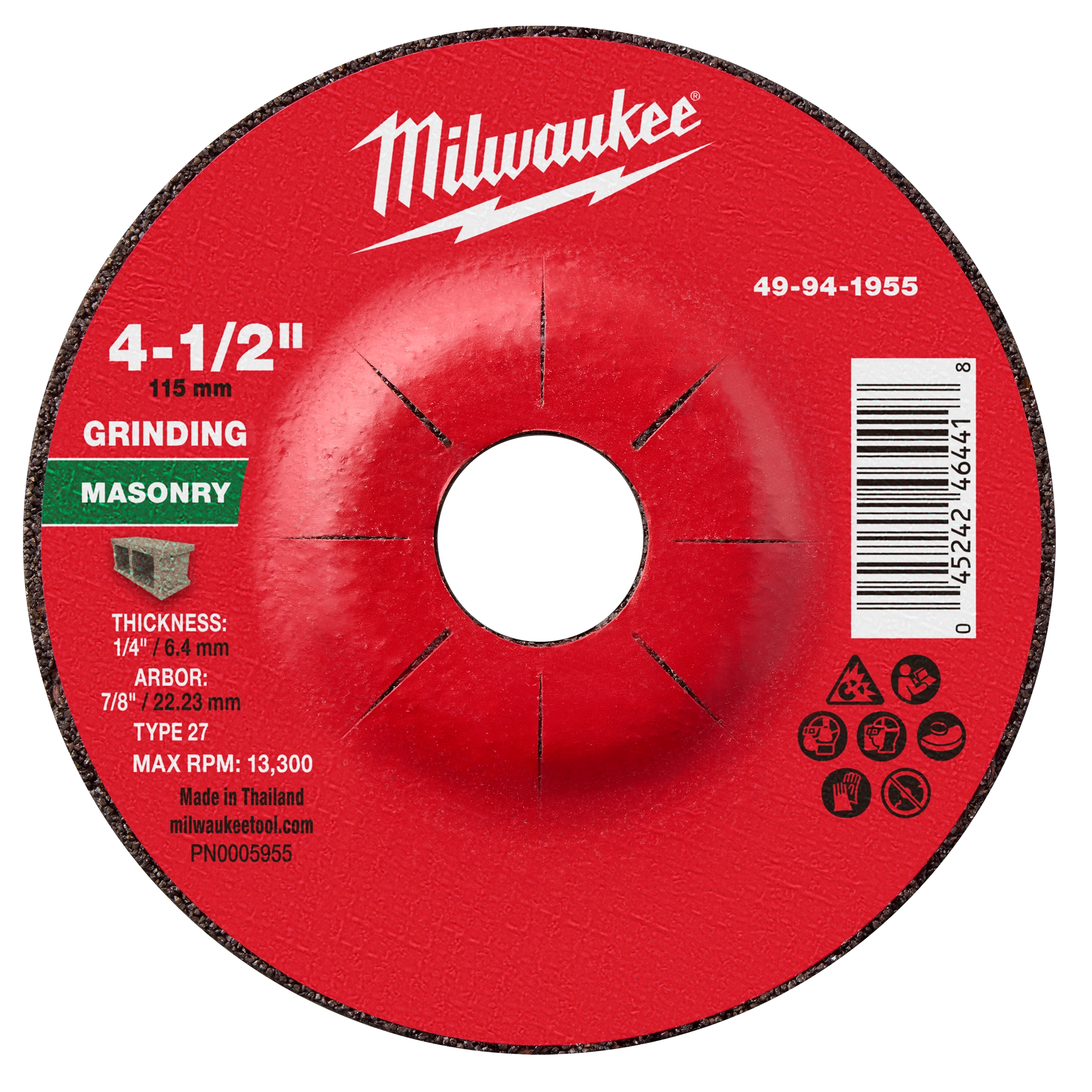 4-1/2" x 1/4" x 7/8" Masonry Grinding Wheel - Type 27