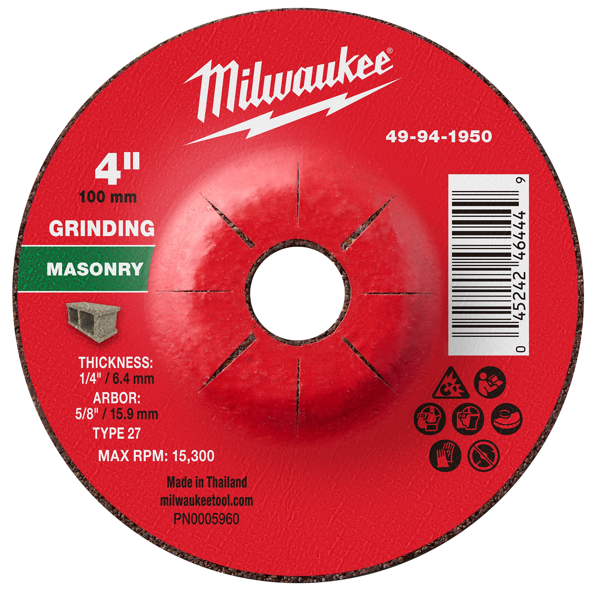 4" x 1/4" x 5/8" Masonry Grinding Wheel - Type 27