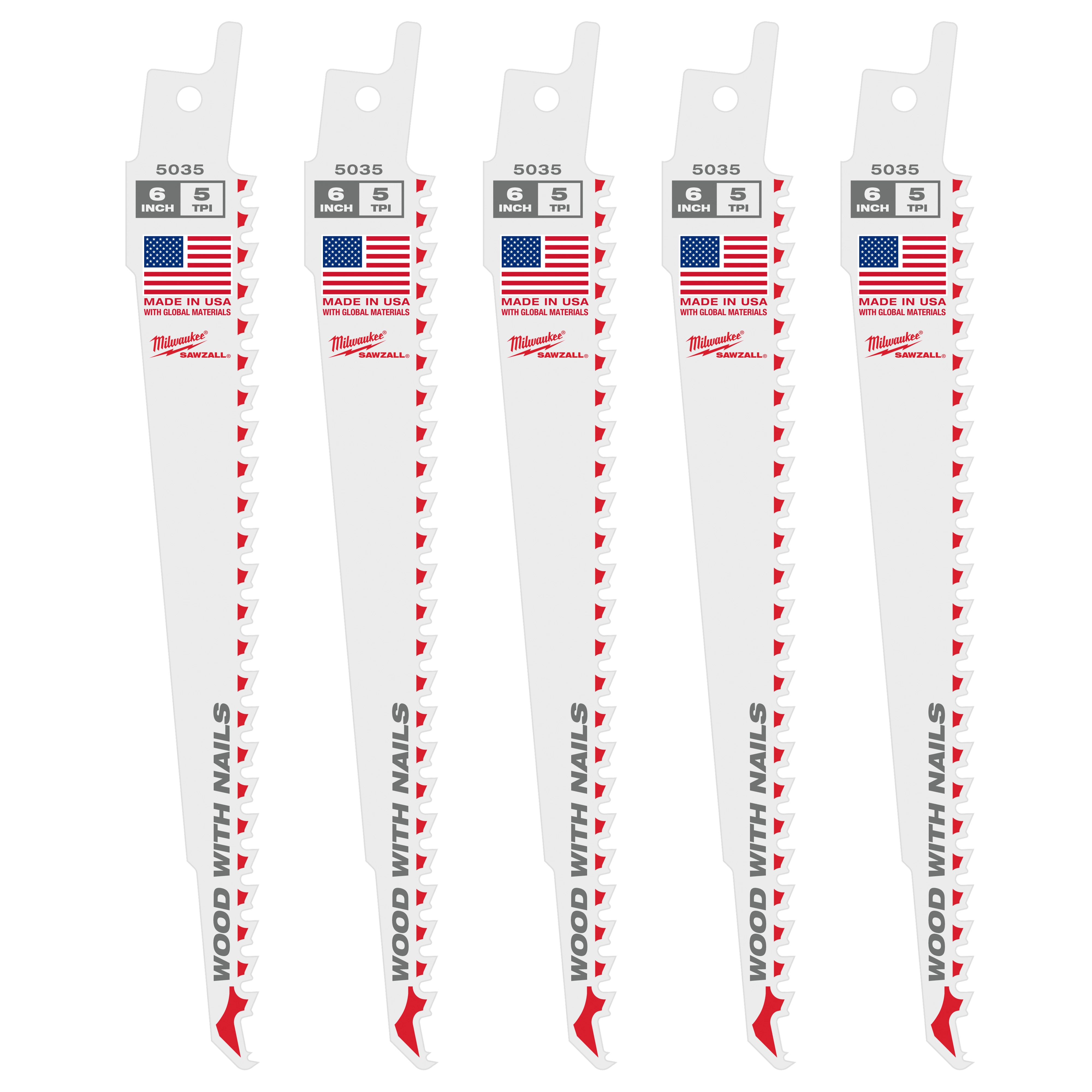 6" 5 TPI SAWZALL® Blade for Wood with Nails Bulk 100