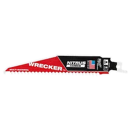 Our WRECKER™ with NITRUS CARBIDE™ SAWZALL® blade for multi-material cutting is the next generation of carbide teeth technology. Our NITRUS CARBIDE™ technology allows this blade to be the fastest cutting and longest-life multi-material blade on the market. The carbide SAWZALL® blade features a 6TPI design for best material versatility and the ability to cut materials from wood with nails and screws to thick metals. Our blade delivers 2x life versus carbide teeth blades eliminating the need for blade changes when cutting a variety of materials. Our carbide sawzall blade is available in 6”, 9”, and 12” blade lengths. It is the ideal blade for demolition and remodeling jobs.