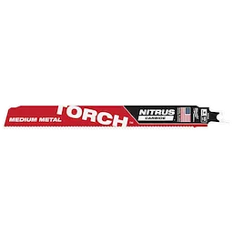 The TORCH™ with NITRUS CARBIDE(TM) for Conduit, Strut and other medium thickness metals delivers the fastest cutting, longest life with a breakthrough Carbide Technology. Our NITRUS CARBIDE(TM) blades are engineered to dissipate heat better than any other demolition blade for faster cutting​. The TORCH(TM) with NITRUS CARBIDE(TM) for Medium metals delivers 2x life versus carbide teeth blades in rigid metal conduit. This 10TPI blade is ideal for smooth, fast cuts and enhanced durability in conduit, strut, angle iron and Stainless Steel.