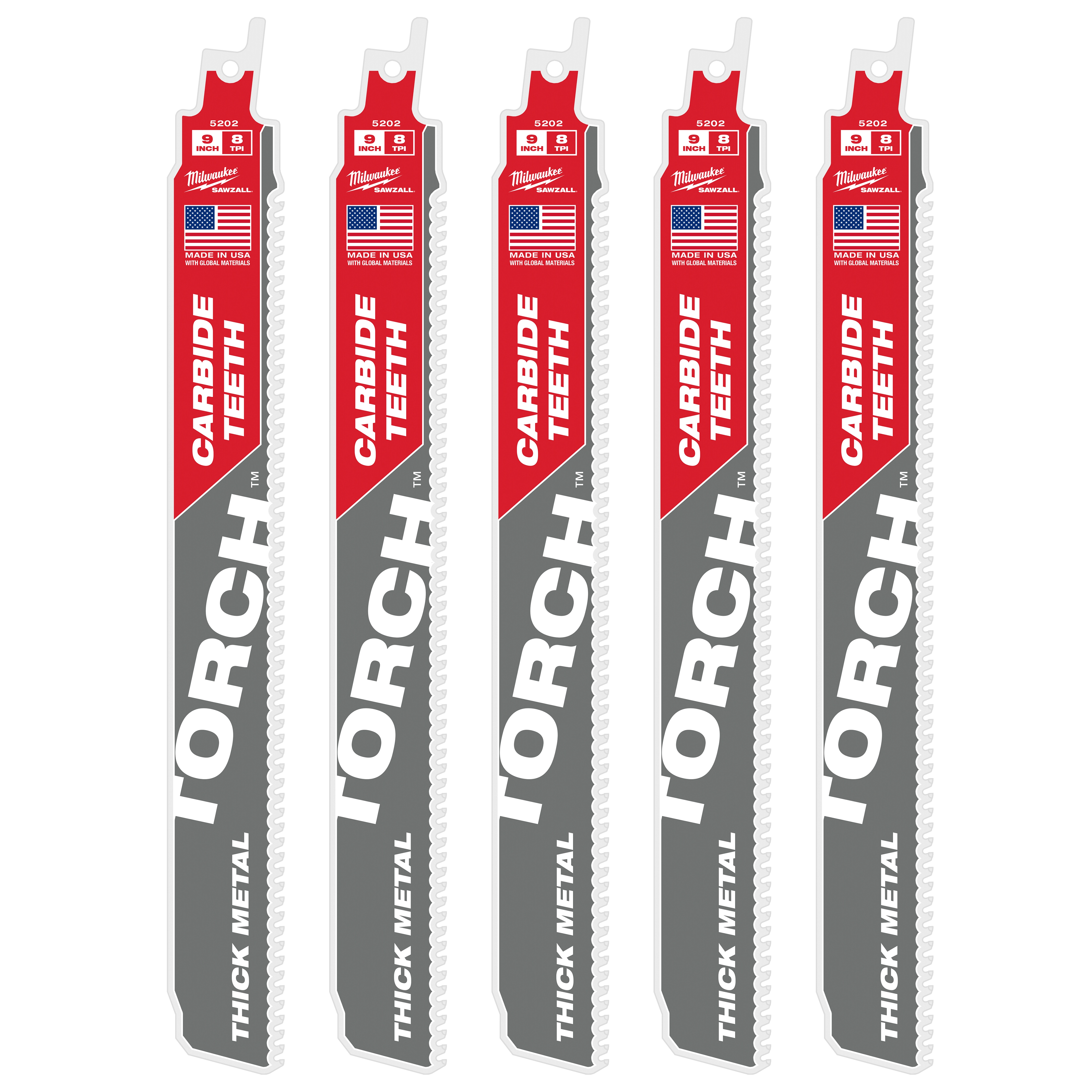 9" 8 TPI TORCH™ with Carbide Teeth SAWZALL® Blades (5 PK)