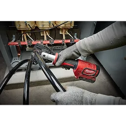 Our M18™ FORCE LOGIC™ CABLE CUTTER KIT with 750 MCM Cu/Al Jaws delivers the fastest installation-ready cuts. This open jaw, fully balanced in-line tool allows you to cut effortlessly in the tightest panels without looping. Featuring the best power-to-size ratio, this compact tool powers through 750 MCM copper or 1000 MCM aluminum 2x faster than the leading competitor. Powered by a Milwaukee® Powerstate™ Brushless Motor and M18™ REDLITHIUM™ 2.0 Battery (sold separately), this tool can make over 250 cuts per charge, delivering industry-leading run-time and unmatched productivity. The kit includes a Carrying Case.