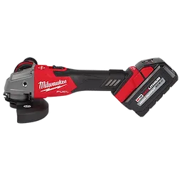 Our M18 FUEL™ 4-1/2" / 5" GrinderSlide Switch, Lock-On Kit is the next advancement in power and performance, generating 11A corded power, fastest cutting, and delivering up to 135 cuts per charge. The M18 FUEL™ 4-1/2" / 5" Grinder generates 11A corded power allowing you to complete the toughest grinding and cutting applications, all on the M18™ cordless system. The POWERSTATE™ Brushless Motor delivers maximum sustained power and 8,500 RPM to remove material faster and increase productivity. REDLINK PLUS™ Intelligence ensures unmatched levels of performance, protection, and compatibility. The M18 FUEL™ 4-1/2" / 5" Grinder includes an electronic clutch for kickback protection, as well as overload protection to maximize motor life. The M18™ REDLITHIUM™ HIGH OUTPUT™ XC6.0 Batteries deliver 50% more power while running 50% cooler than our M18™ REDLITHIUM™ XC Batteries and are compatible with 200+ Tools in the M18™ System. With tool-free accessory and guard adjustments, you will experience faster accessory changes, and less downtime, while remaining fully compatible with the most common accessories in the market. The MILWAUKEE® M18 FUEL™ 4-1/2" / 5" Grinder takes cordless grinders to the next level in performance and run-time.