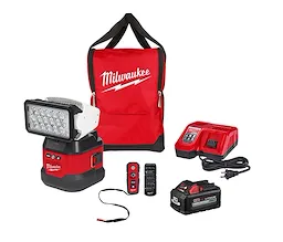 Our M18™ Utility Remote Control Search Light Kit w/ Portable Base is the first of its kind, allowing Power Utility users to SPOT LINES and FLOOD FIELDS from up to 1,250 yards away. This cordless light performs with up to 4,250 Lumens of TRUEVIEW™ High Definition Output and adapts to provide either spot or flood mode and the option to use with a permanent or portable magnetic base. Also included is a pre-paired wireless remote control that enables the light to rotate, adjust, and power from afar. This light is also ONE-KEY™ compatible, making it easy to track via the ONE-KEY™ online app. The MILWAUKEE® Utility Remote Control Search Light is weather-resistant to survive outdoor use. The LEDs never need to be replaced with a 5-year tool warranty and a Limited Lifetime LED Warranty.
