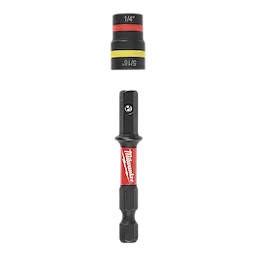 Milwaukee® SHOCKWAVE Impact Duty™ QUIK-CLEAR™ 2-in-1 Magnetic Nut Drivers feature the Most Durable QUIK-CLEAR™ Magnet and 2-in-1 size versatility. The QUIK-CLEAR™ cleaning mechanism allows for fast and easy removal of metal shavings from the magnet to prevent fastener head stripping. The 2-in-1 nut driver design offers 1/4" and 5/16" nut driver sizes on one shank to allow for maximum versatility when driving hex head screws on the jobsite. The QUIK-CLEAR™ 2-in-1 Magnetic Nut Drivers feature a powerful Impact Duty™ magnet that prevents it from loosening over time to enable a consistent secure grip and unyielding fastener engagement. The optimized SHOCK ZONE™ absorbs peak torque and prevents bit breakage. Made from heat treated CUSTOM ALLOY76™ steel to control hardness and extend bit life.The nut drivers feature two color-coded rings for quick and easy size identification. Designed for use with impact drivers and drill drivers.