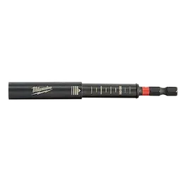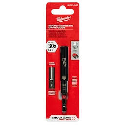The MILWAUKEE SHOCKWAVE™ 3" Impact Magnetic Drive Guide is engineered for extreme durability. The magnetic drive guide features optimized Shockzones that absorb peak torque and prevent them from breaking. Each Custom Alloy76 Steel drive guide has a stainless steel sleeve that slides over the fastener for improved stability. The drive guide barrels have laser-etched depth gauges for increased fastener control. The Milwaukee magnetic drive guide holds fasteners to the guide with a C-ring to retain the insert bit for maximum efficiency.